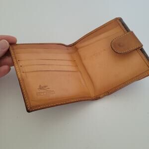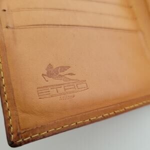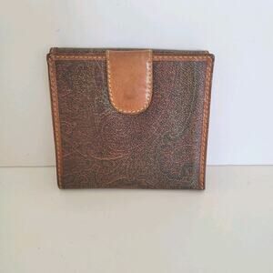 Etro Vintage Brown Paisley Medium Leather Wallet Compact Logo Italian Bifold