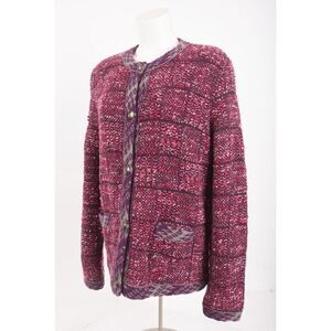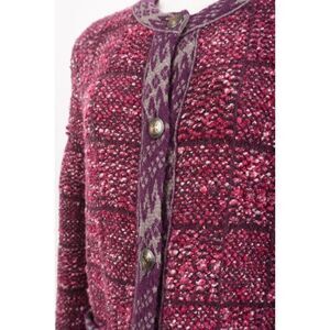 Etro Womans Sweater Jacket Coat US 12 Italian Size 48 Pink Maroon Tweed Giacca Jacket