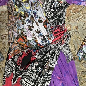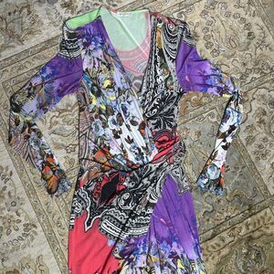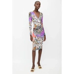 Etro Womens Midi Dress Size 42 Multicolor Print V Neckline Pencil Long sleeves