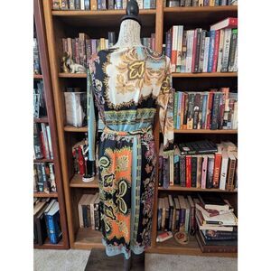 Etro Milano Women's Size 44 Black Silk Multi Printed Jersey Midi Dress Italy