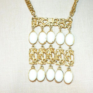 Etruscan Style White Lucite Gold Tone Bar Tassel Pendant Necklace Vintage Runway