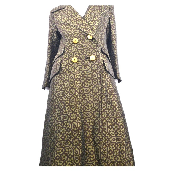 Vintage long opera olive green and brown coat
