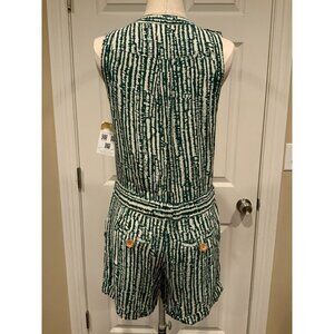 Ett Twa Anthropologie Dark Green & White Patterned V-Neck Romper, Size 0 (US)