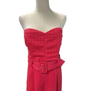 Ett Twa Anthropologie Haley Strapless Jumpsuit Pink Jacquard Crop Wide Leg