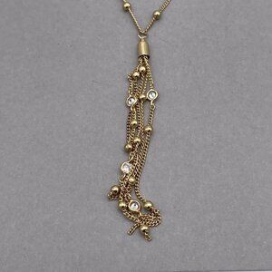 14k Gold Plated Layered Chain Drop Tassel Necklace