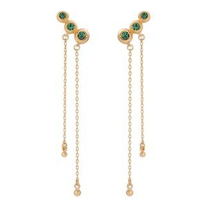 These earrings feature a sophisticated design with emerald-colored crystals set in 18k gold plating. The elegant waterfall style adds a touch of luxury, making them suitable for both formal and casual occasions. The lightweight design ensures comfortable wear throughout the day.