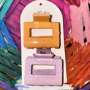 Add a pop of color to your hair with this Ettika Hair Claw Set bundle. The set includes 7 hair claws in shades of pink, peach, green, blue amd ivory.