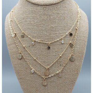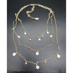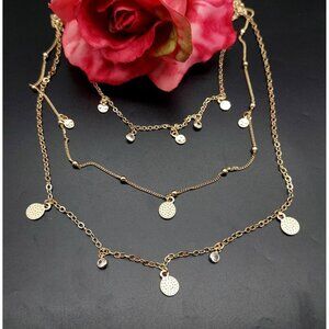 Ettika Layered Pendant Necklace in Gold Tone Saturn Chain Discs Crystals 15" Lon