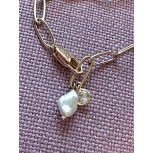 18k gold-plated metal with cubic zirconia stones and freshwater pearl