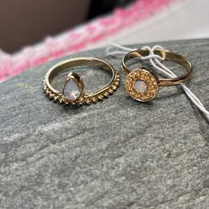 Ettika Set of 2 Rings Gold Finish Rhinestones 7-7.5 Layered or Alone NWT