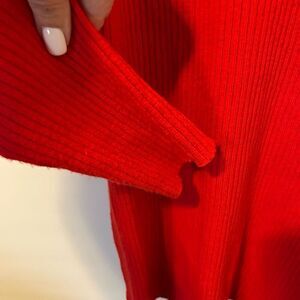 Ettiwa by Anthropologie Sweater Womens Small Red Rib Knit Wool Blend Split Hem