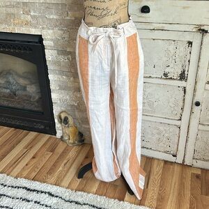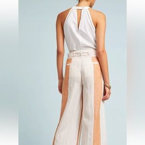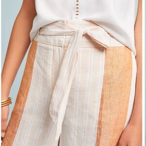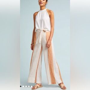 Ett:twa by Anthropologie orange stripe tie waist wide leg flowy 100% linen pants.