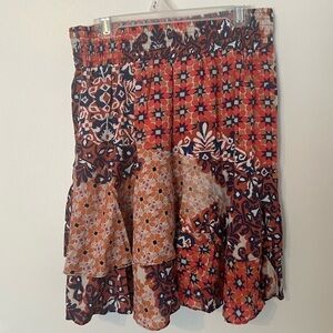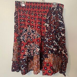 Euc Cabi XS Ruffled Skirt in a Red Boho Floral Print