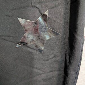 Stylish black leggings with star patterns. Perfect for casual wear. These are fun and unique, go with absolutely anything and always get compliments ๐โค๏ธ. The inseam is 25 Have fun styling these ๐๐