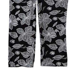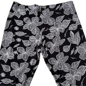 Excellent condition; Black/white floral polyester/rayon/spandex; elastic waistband; 24.5" inseam; 9.5" rise; soft, stretchy lightweight; smoke free home.