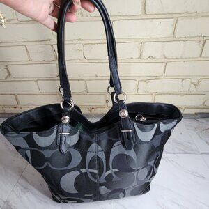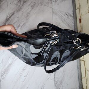 Euc Coach Carly Signature Black & Gray Shoulder Bag Large