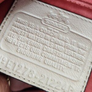 C494 This is a gorgeous Coach Madison ivory off-white leather shoulder bag with a top handle. It features a zipper closure, gold hardware, and a detachable strap. The bag has inner pockets, a pink canvas lining, and a bag charm. The design is classic and designer-themed, suitable for various occasions such as parties, casual outings, formal events, or business meetings.