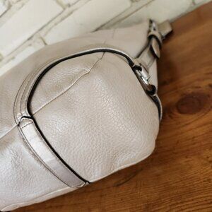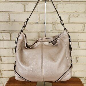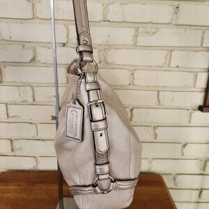 This Coach Katarina bag is a stunning addition to any wardrobe. The metallic champagne genuine leather finish