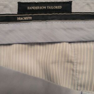 The pants come in a beautiful blue color and are perfect for men who want to add a touch of sophistication to their wardrobe. The pants are not vintage and are made by the Hackett brand, known for their quality clothing. These pants are perfect for any regular-sized man who wants to look sharp and feel comfortable.