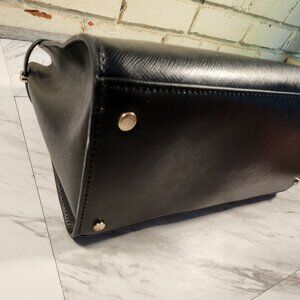 black leather and gold colored hardware. The bag is medium and is in size, perfect for women on-the-go and storage for all your essentials. It