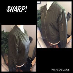 Great looking jacket in excellent condition. Worn only once! Army Green with side pockets and pocket on sleeve