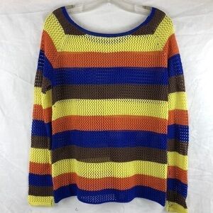 Euc-blu Pepper Vibrant Color Striped, Crochet, RoundNeck, Long Sleeve Boho Top M