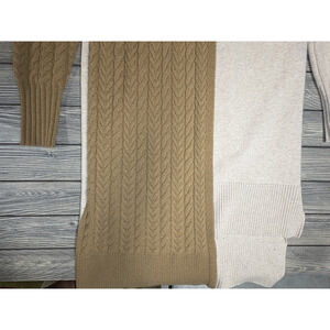 Beautiful two tone sweater dress 100% Wool! It does have few light blue stains! Most are hard to see or in spots that don't show. Please see pictures for full condition on the stains! But this dress is still beautiful with the stains and very trendy! Please see pictures for full condition !