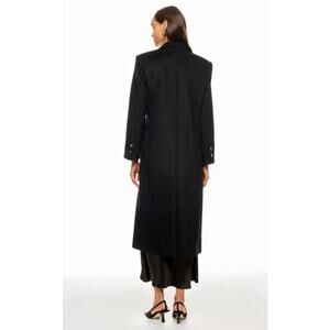 Black (64% Polyester, 27% Wool, 4% Acrylic, 3% Viscose, 2% Nylon). Coats. Long Sleeve. Front button closure.