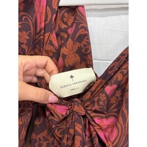 Eugenia Fernandez Floral Puff Sleeve Tie Back Babydoll Mini Dress Brown Size S