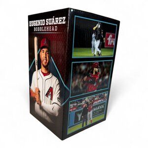 Celebrate your passion for the game with this limited-edition Eugenio Suarez bobblehead, showcasing his iconic hands-up pose in Arizona Diamondbacks gear.