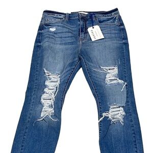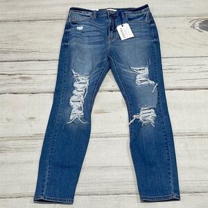 Eunina Bella Super High Rise Skinny Ankle Jean Distress Denim Blue Size 13