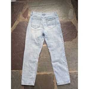 The Eunina Distressed LIGHT BLUE Women's Jeans in size 7 offer a relaxed fit with a mid-rise and distressed look, perfect for a grunge or 90s style. Made from a cotton blend denim fabric, these jeans feature a zip and button closure, making them easy to put on and take off. The light blue wash adds a trendy touch to the classic boyfriend style, making them a versatile and stylish addition to any woman's wardrobe.