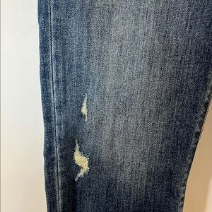 Stylish high rise jeans with button-up closure. Subtle distressed accents. Perfect for casual outings.