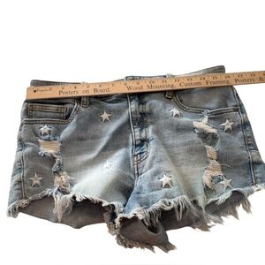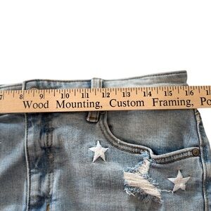 Eunina Jean Shorts Large Stretch Denim Lulu High Rise Distressed Embroider Stars