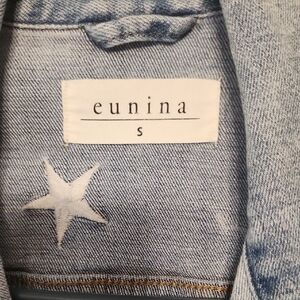 Chic denim jacket by Eunina. Features a white star detail. Perfect for casual wear.