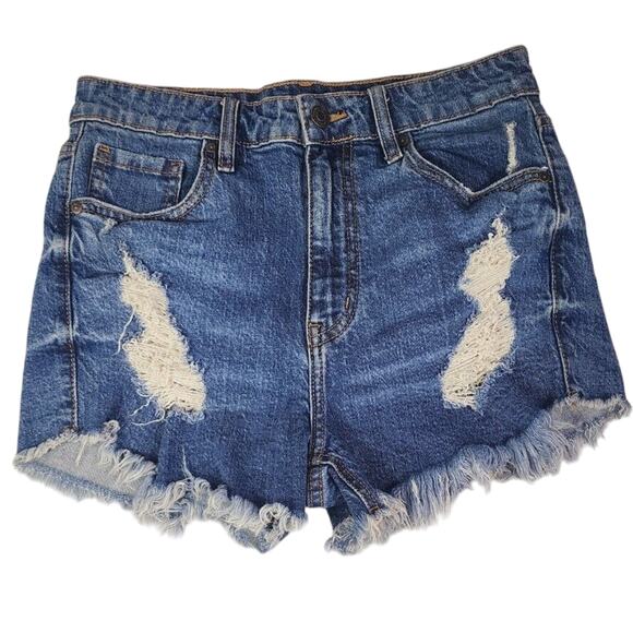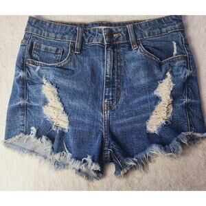 Eunina Lulu Sz Sm High Rise Shorts Cut Off Shortie denim Blue Distressed Stretch