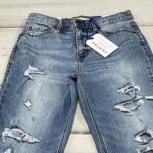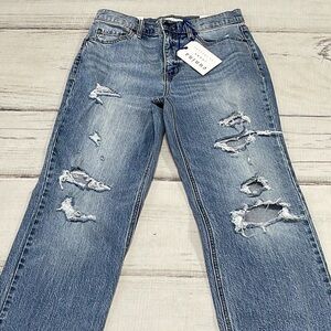 Eunina NWT Codi Super High Rise Dad Jean Pulp Fiction Distress Denim Blue Size 7