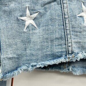 • Light wash denim with embroidered star accents