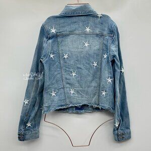 Eunina Star Embroidered Distressed Light Wash Denim Jacket With Frayed Hem