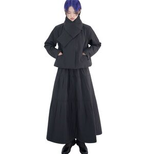 This is an oriental mood padded jacket. It has a short length and a muffler of the same material to add a cute feel. It is comfortable to wear with the warmth that wraps around the body and the light material. product info Round neck / front pocket Front one button, inner button closing * A muffler of the same material is included. Flat Measurements (approx.), Pit to Pit: ", Waist: ", Length: ". Condition; NWOT | Size: Free size (One-size) | Color: Black. Top-rated seller, same-day shipping! Shop my closet for more trendy and vintage items to complement your style. Bundle & save!