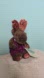 Adorable moose plush toy with plum colored velvet romper with decorative buttons and red berries.
