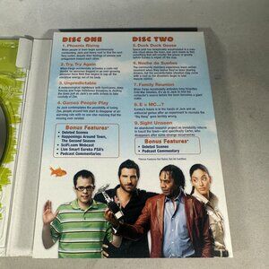 Season two of "Eureka" continues the quirky adventures in the mysterious and high-tech town, where science meets chaos. This 3-disc set features over 5 hours of bonus content, including deleted scenes and behind-the-scenes extras. Discs are in good condition with vibrant artwork housed in eco-friendly packaging.