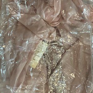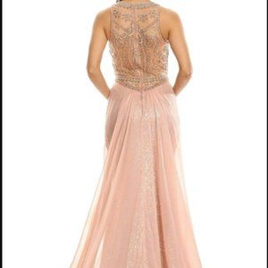 Eureka Sequin Illusion Halter Evening Prom Dress W/Sheer Overlay Rose Gold XS