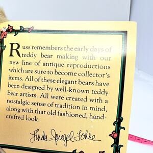 Eureka by Russ Fully Jointed 11" Plush Linda Spiegel Lohre Realistic Soft Bear Beige Ribbon Toy 726 NEW Dead stock Vintage VTG Collect Collectable Stuffed Animal