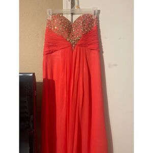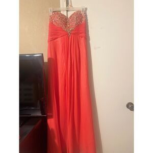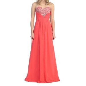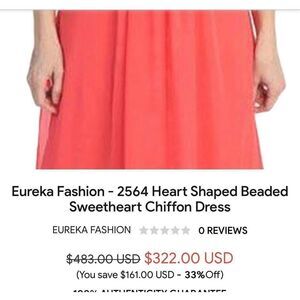 Look sophisticated and mature in this simple yet chic design by Eureka Fashion 2564. This strapless chiffon ensemble fashions a sweetheart neckline with beading on its bodice and pleating details. The back has a zipper closure while the chiffon skirt begins from the empire waist and flourishes a floor-length A-line silhouette. The dress includes a matching shawl. This Eureka Fashion dress will let you celebrate that divine feminine beauty! Details: Strapless, Corset lace up back, Zipper, Pleating detail, Heart shaped beading, Matching shawl, A-line skirt, Chiffon. Length: Long. Neckline: Sweetheart. Waistline: Empire. Silhouette: A-line.