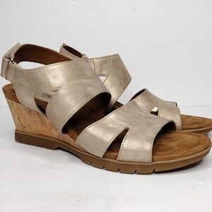 Euro By Soft Sadra women's gold open toe comfort wedge sandals.