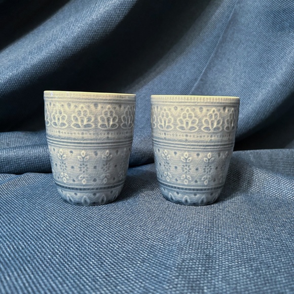 Euro Ceramica Fez Stoneware Mug Set of 2 Crackle-glaze Teardrop Mandala Design