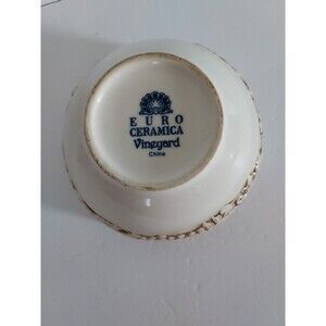 Euro Ceramica Vineyard 6" Soup Bowl Tuscan Embossed Grapes & Leaves On Beige