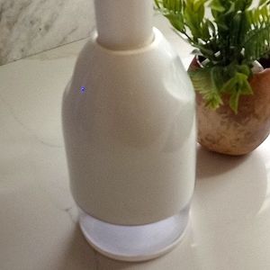 Clear acrylic at base holds chopped foods white caps seals tight but removes easily