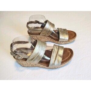 Euro Soft Sofft Sandals Womens 9.5 Kahley Wedge Cork Slingback Gold Faux Leather